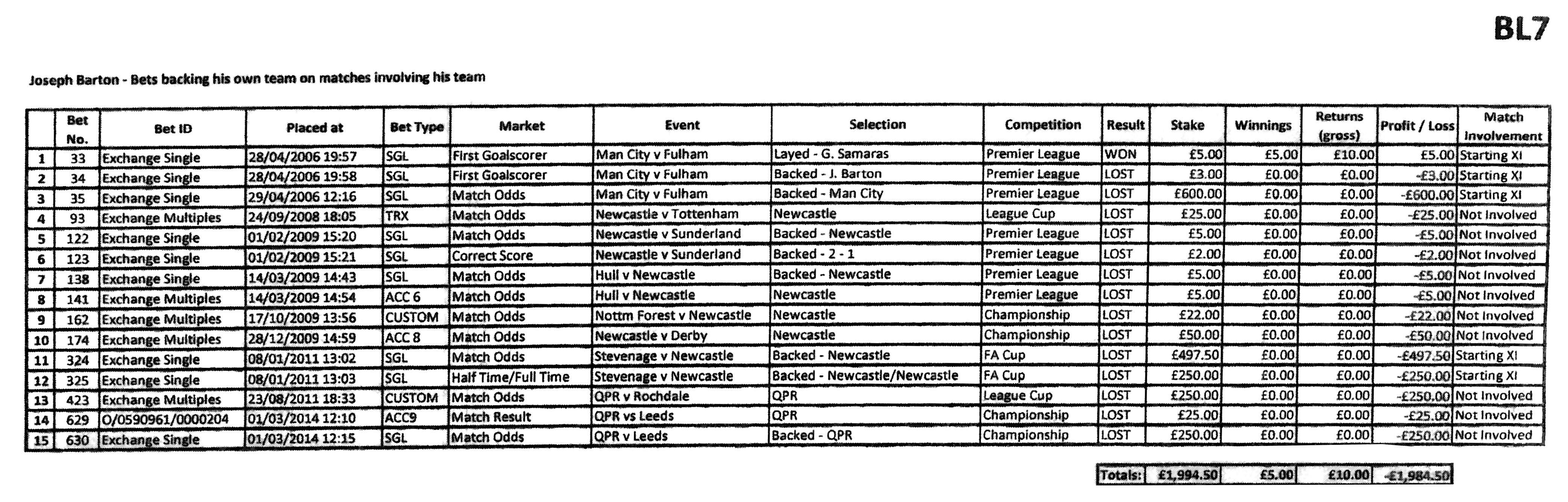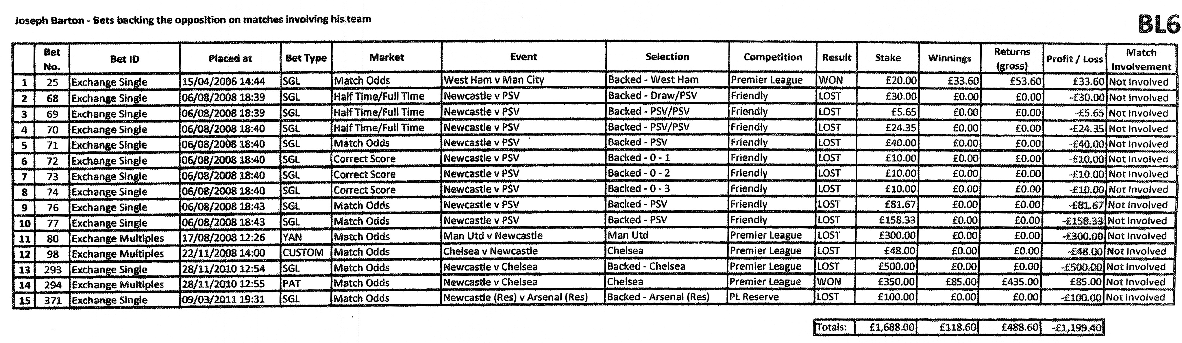 As for the scale of my football betting, since 2004, on a Betfair account held in my own name, registered at my home address and verified by my own passport, with full transparency, I have placed over 15,000 bets across a whole range of sports. Just over 1,200 were placed on football and subject to the charges against me. The average bet was just over £150, many were for only a few pounds.