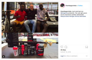 An August 2016 Instagram photo (see right) shows Fairweather pictured with Demarte Pena and MMA trainer Themba Gorimbo. ‘Just received our @biogensa products’, reads a caption. ‘You can get yours at any discherm [sic. Dischem] outlets nationwide’, it continues, also showing a number of Biogen products. As mentioned, Pena says that Fairweather gave him products “numerous times”. Fairweather argues that the image was taken as part of a video shoot, for which he has proof.
