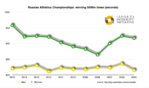 In August 2015, The Sports Integrity Initiative showed how Russian athletes had been getting slower since 2005, especially in distance events and especially after the introduction of the Athlete Biological Passport (ABP) in 2009. It is a generally accepted facet of human development that as time marches on, athletes get bigger, faster and stronger. So the fact that times have got slower – especially in distance and female events where doping is known to have the most benefit – suggests that something may be amiss.