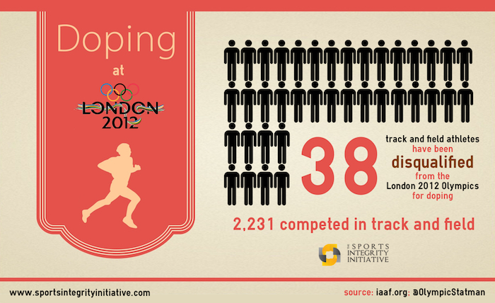The figures represent athletes who competed at London 2012 but were later disqualified, and were produced by Hilary Evans who analysed the IAAF website and monthly newsletters. Twenty-six of the 38 disqualified are female, which either suggests that it is easier to catch females or that the effect of performance-enhancing drugs is more pronounced in female athletes. In the German Democratic Republic, State Plan 14.25 focussed mainly on female athletes, as it was understood that doping females would yield better results.