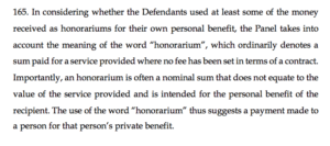 The IAAF Ethics Panel’s consideration of the use of the word ‘Honorarium’ to describe the Nike payments…