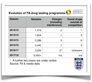 • England’s Football Association (FA) has confirmed that it will increase the number of anti-doping tests from the 3,250 (approximate) it conducted during the 2016/17 season to over 5,000 for the 2017/18 season. A spokesman for the governing body said that the announcement was made in a recent media briefing to select journalists.