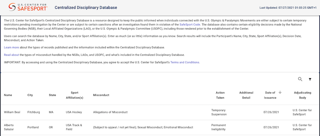 • Athletics coach Alberto Salazar has been declared permanently ineligible from 26 July by the US Center for SafeSport, based on allegations of sexual and emotional misconduct. The details behind the Decision, which can be appealed, were not published. In September 2019 Salazar, formerly Head Coach at the Nike Oregon Project, was sanctioned with a four year ban for administration of a prohibited method; tampering and/or attempted tampering; and trafficking of testosterone. The full Decision revealed that the sanctions were due to experiments on staff and family members designed to ensure that athletes under his control didn’t commit anti-doping rule violations (ADRVs). The Court of Arbitration for Sport (CAS) held a hearing regarding his appeal against the ban from 8 to 16 November last year, but has yet to publish a Decision.