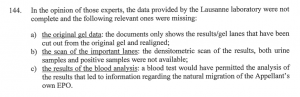 At the UCI ADT, Dr. Boye argued that the data supplied by the Lausanne Laboratory was not complete (see right). The UCI supplied this data to Cardoso’s legal team after being instructed to do so, but informed WADA as it saw such a request as a challenge to the scientific validity of testing methods (see left).
