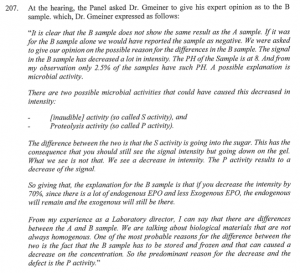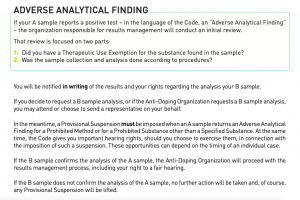 An ATF isn’t an AAF, but allows a Laboratory to indicate that there may be some suspicion about the results and further investigation should be conducted (click here to download WADA’s full definition). An internal assessment report performed by the Laboratory concluded that ‘immunopurification and/or degradation of EPO are highly likely phenomena as a source of inconsistent in analytical result between A and B sample’.
