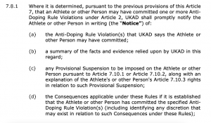 The ADR require UKAD to notify an athlete of a potential ADRV or provisional suspension (click to open…)