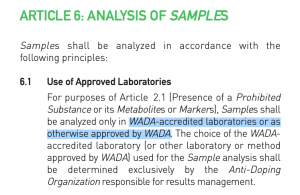 • why it allowed British Cycling to conduct anti-doping tests in a Laboratory not accredited by WADA, as required by Article 6.1 of the Code.