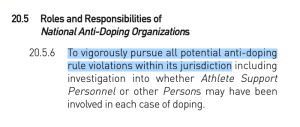 • whether it pursued the potential ADRV, as required by Article 20.5.6 of the World Anti-Doping Code; and