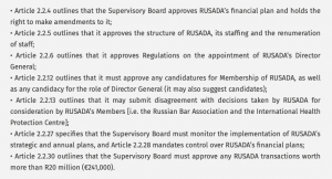 The Russian Ministry of Sport is a State body; RUSADA’s ‘Members’ have links to its ‘Founders’ – the ROC and RPC; and the ARLF was founded in 2005 by State officials. They are the ones that allowed Bukhanov to remain in place for a year, and now want him removed. Is this the ‘independence’ that WADA insists it is critical that RUSADA displays?
